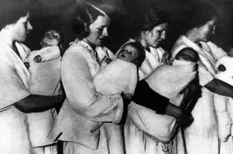 Hildegard, fearing their disapproval, told her parents that she was “undertaking a residential course in National Socialism” and was escorted to an old castle in Bavaria, near the Tegernsee lake. There she found forty other girls, all living there under assumed names. “All you needed to be accepted there was a certificate of Aryan ancestry as far back at least as your great-grandparents”. The residence was very luxurious, with common rooms for sports and games, a library, music room and cinema, “the food was the best she had ever tasted”, and the place had servants. She also had to sign a declaration that “there had never been any cases of hereditary diseases, dipsomania or imbecility in her family”. Additionally, there was a document to sign in which she would be renouncing all claims to her child. Then, Trutz and other young girls were introduced to very good-looking SS officers. In the first week, Trutz was visited by the officer on three consecutive evenings. She immediately became pregnant and was transferred to a special home where she was given special care. After the baby was born, she breastfed him for two weeks and then the baby was taken to a special SS home where he was to be brought up as a loyal servant of the Nazi state. Trutz never discovered what became of her child and his eventual fate remained a mystery.